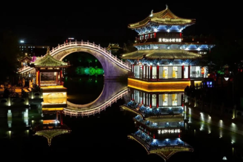 文書(shū)御河店,是目前開(kāi)封唯一一家24小時(shí)書(shū)店 ,以“宋代文化”傳承為定位,汲取地域特色,集藝術(shù)、生活于一體創(chuàng)造的多元空間。 室內(nèi)建筑面積約410平方米,共三層。